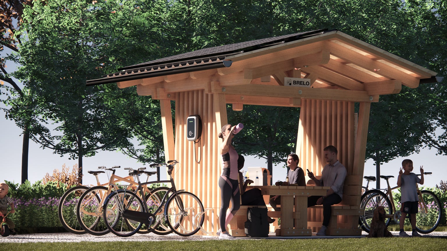 BRELO® ist eine Break and Loadstation für E-Bikes, die es den Fahrradfahrern ermöglicht, ihre E-Bike-Akkus während einer Pause aufzuladen. Die Station bietet Lademöglichkeiten für verschiedene E-Bike-Modelle und ermöglicht es den Nutzern auch, ihre Handys und andere elektronische Geräte aufzuladen.